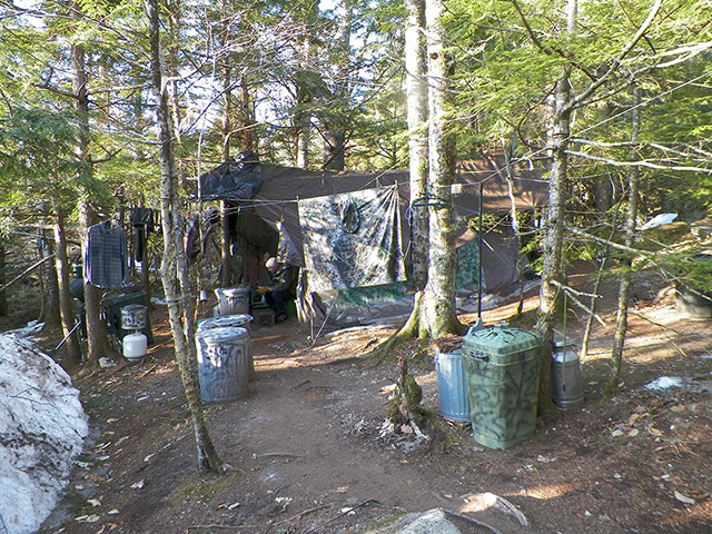 In the 47-year-old's camp they recovered goods that included high-end LL Bean sleeping bags and a new tent.